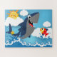 A fun puzzle for kids depicting a shark, fish and starfish romping in the ocean.