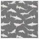 Cool soft grey fabric printed with an energetic shark pattern.