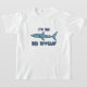 This fearsome great white shark (who happens to be blue and green) doesn't look so frightening after all. He's swimming through the centre of our fun I'm the BIG Brother tshirt. The text is patched and stitched just like the cartoon fish.