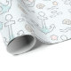 Shark it's a girl wrapping paper with anchors, shells, stars in soft pink, aqua and coral.
