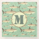 Shark Jellyfish Pattern Watercolor Monogram Green Glass Coaster