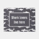 Fun doormat for the shark lovers out there, a grey doormat with white shark silhouette pattern.
