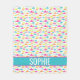 Simple but sweet shark pattern blanket in aqua, pink, orange, yellow and mint green.