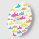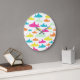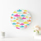 Simple but sweet shark pattern clock in aqua, pink, orange, yellow and mint green.