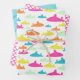 Simple but sweet shark pattern wrapping paper in aqua, pink, orange, yellow and mint green. Includes