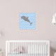 A cartoon of a grey shark with a light blue and white zigzag pattern background.