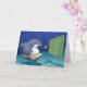 Here's a shark trying to figure out the difference between surfers and seals so he won't eat any more surfers on accident. The card is blank inside and can be personalized however you please.