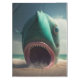 Shark sculpture on the beach, in the style of rendered in cinema4d, surrealistic grotesque, dreamlike illustration, dark cyan and green, concept art, gigantic scale, fish-eye lens