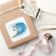Sticker shown in a large square shape with a cute shark surfing print.