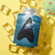 Gliding through the ocean depths, the apex predator moves with swift precision. Be the apex predator of the streets on this sleek board design featuring a shark tooth and shark graphic on a beautiful deep sea background.
