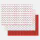 Shark Valentines Wrapping Paper Sheets, Three 19 x 29 heavy weight wrapping paper, first sheet features sharks chasing a hook heart of love, a complementing 2ed sheet red heart design and 3rd sheet small white squares on a white background.