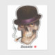 A grinning skull looks up to you in a roguish way, donned in a black derby with a purple band.