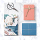 This wrapping paper set features a sharks illustration with two solid colours taken from the drawing.