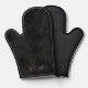 This oven mitt features a lower stamped effect name or monogram on a mottled black background giving a look of faux suede.