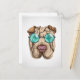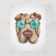 This design features a portrait of a Sharpei dog wearing teal tinted glasses.