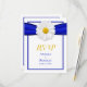 The text and background colour on this shasta daisy and royal blue or light navy satin ribbon response card is fully customisable. To change the text, use the personalise option. For more extensive changes, such as changes to the font, font colour, font size, text layout or background colour, use the customise option. The colours on this card are white, a light navy or royal blue, and a golden yellow. This card would work well for a variety of special occasions. Also, this card is currently setup to print on the linen paper type, but would look nice on any of the other paper types. To change the paper type, click on the invitation options tab. This response card makes a good reception, direction, or accommodation card as well. All you need to do is change the text.