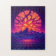 Shattered Neon Sun Over Synthwave Mountains Jigsaw Puzzle