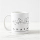 Shayne spelled out in amino acids as S H A Y N E (Serine Histidine Alanine Tyrosine Asparagine Glutamic acid) on a mug for the scientist in you.
