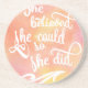 A motivational She Believed She Could So She Did typography on a watercolour background.