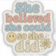 Add a dose of confidence and colour to your day with this retro-inspired "She believed she could so she did" sticker. Designed with bold bubble letters and cheerful details like smiley faces and flowers, it’s perfect for laptops, water bottles, journals, or gifts that inspire! A cute way to spread girl power and good vibes.