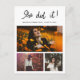 She Did It Graduate Script Three Photo Collage Invitation Postcard