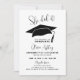 She Did It Graduation Invitation with the grad's photo on the back of the grad invite. Celebrate your grad in style with these elegant black and white graduation invitations featuring white graduation cap, script lettering for "She did it" and her name. Chic black graduation party invitations.