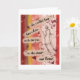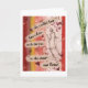 This digital collage artwork in bright red and yellow and pink features a stylish retro woman's silhouette amongst lots of lines and hearts, and reads: "She couldn't keep her colors inside the lines, so she drew new lines." This would make a great encouragement card for any woman in your life.