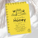 This cute "she found her honey" hand-drawn/doodle style bridal shower invitation features a yellow background with a honey jar and dipper, bees, and flowers. Personalize it for your needs. You can find matching products at my store.