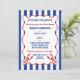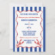 Throw the perfect nautical bridal shower with these invitations. The fun "She found her lobster" headline can be replaced with your own custom text, and all of the text on these invites is ready for your personalized text. These invitations have a red white and blue color scheme with blue and white stripes, a red scalloped frame and my hand drawn realistic style lobster invitations in red.