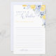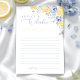 Invite guests to share heartfelt advice and sweet wishes with this elegant advice and wishes card. Designed with watercolor lemons, dusty blue florals, and graceful calligraphy, this card is perfect for lemon-themed bridal showers, summer celebrations, and Mediterranean-inspired events.