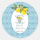 An elegant Bridal Shower design with blue tile background and a cup of lemons.