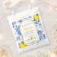She Found Her Main Squeeze bridal shower favor bags feature blue flowers, yellow lemons, and black and yellow text.