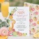 The front of the invitation features a beautifully arranged citrus motif surrounding a crisp, modern layout, with soft script typography highlighting the phrase “She Found Her Main Squeeze.” A sparkling mimosa illustration adds a celebratory touch, making this design especially ideal for mimosa bars, bridal brunches, or outdoor tea parties. The back showcases a seamless citrus and floral pattern that ties the entire design together, giving it a polished, boutique-quality finish from every angle.