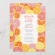 Whimsical citrus fruit in lemon, pinks, coral, orange and ruby red grapefruit colours. The hand drawn citrus slices include a watercolor painted texture for a juicy addition to a colourful wedding shower invitation.