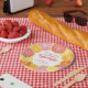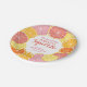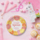 Whimsical citrus fruit in pinks, coral, orange and ruby red grapefruit colours. The hand drawn citrus slices include a watercolor painted texture for a juicy addition to a colourful wedding shower paper plate.