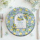 An elegant Bridal Shower design with blue tile background and lemons.
