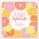 Whimsical citrus fruit in pinks, coral, orange and ruby red grapefruit colours. The hand drawn citrus slices include a watercolor painted texture for a juicy addition to a colourful wedding shower decoration.