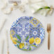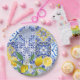 This watercolor lemon she found her main squeeze theme Mediterranean bridal shower paper plates features Mediterranean tiles pattern in blue and white colour.The dusty blue,yellow,navy blue and white colour is a perfect colour palette for classy and formal bridal shower party decor.