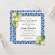 A She Found Her Main Squeeze Lemon Bridal Luncheon Theme is the perfect summer bridal shower. Refreshing and cool citrus fruit always create beautiful displays and refreshments. The Jenny's Lemons Collection takes chic watercolor lemons and pair them with Mediterranean blue tiles. In this design the tiles create a blue frame. A thin gold frame elevates it. Two lemon bouquets add a floral touch. She found her Main Squeeze is written at the top. The remainder of the bridal luncheon details follow.