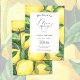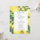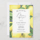 Watercolor lemon citrus theme bridal shower card featuring watercolor illustration of lemons pattern and greenery branch. Elegant calligraphic handwriting, which is perfect for spring, summer or autumn weddings.