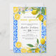 This watercolor lemon she found her main squeeze theme Mediterranean bridal shower invitation features Mediterranean tiles pattern in blue and white colour.The dusty blue,yellow,navy blue and white colour is a perfect colour palette for classy and formal bridal shower party.