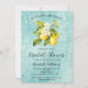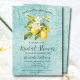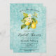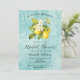 Elegant watercolor lemon-themed bridal shower invitation with the text "she found her main squeeze", a floral illustration, and a teal background. Personalise the text with your party details, RSVP information, and registry name.