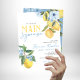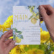Elegant and Sweet Watercolor She Found Her Main Squeeze Lemon Bridal Invitations. Featuring beautiful elegant dusty slate blue watercolor flowers and sweet yellow lemons. Available printed with envelopes or for high resolution digital download. Blue backside featuring more stunning watercolor lemons and florals.