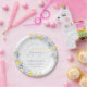 Stylish paper plates featuring watercolor lemons and soft blue florals. Perfect for a summer bridal shower, combining practicality with elegant Mediterranean-inspired design.