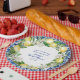 Designed to coordinate with the Jenny's Lemon Collection, this bridal shower paper plate features a yellow lemon and white floral wreath. There is a hint of the blue tiles around the edge of the round sticker. She Found Her Main Squeeze begins the bridal shower text. The bride's name and bridal shower follows written in a modern and trendy script font. The date completes the text. All the text is editable.
