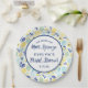 These fun and pretty paper plates are perfect for bridal showers. They feature the funny message, "She found her main squeeze" and are ready to be customised with the bride's name and date. Features a border of yellow lemons with mint green and royal blue floral and foliage accents.