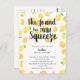 Budget Lemon bridal shower with text that says "She found her main squeeze" bridal shower invitation.