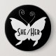 SHE/HER Diva Butterfly Round Black Button