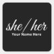 She Her Pronouns in Script Font with your name to personalise these stickers. Stick them here or there or anywhere.