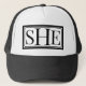 Baseball / Trucker Hat / Cap featuring the pronoun SHE in an minimalistic yet new and innovative design. Perfect gift for transwomen or feminine identified persons.